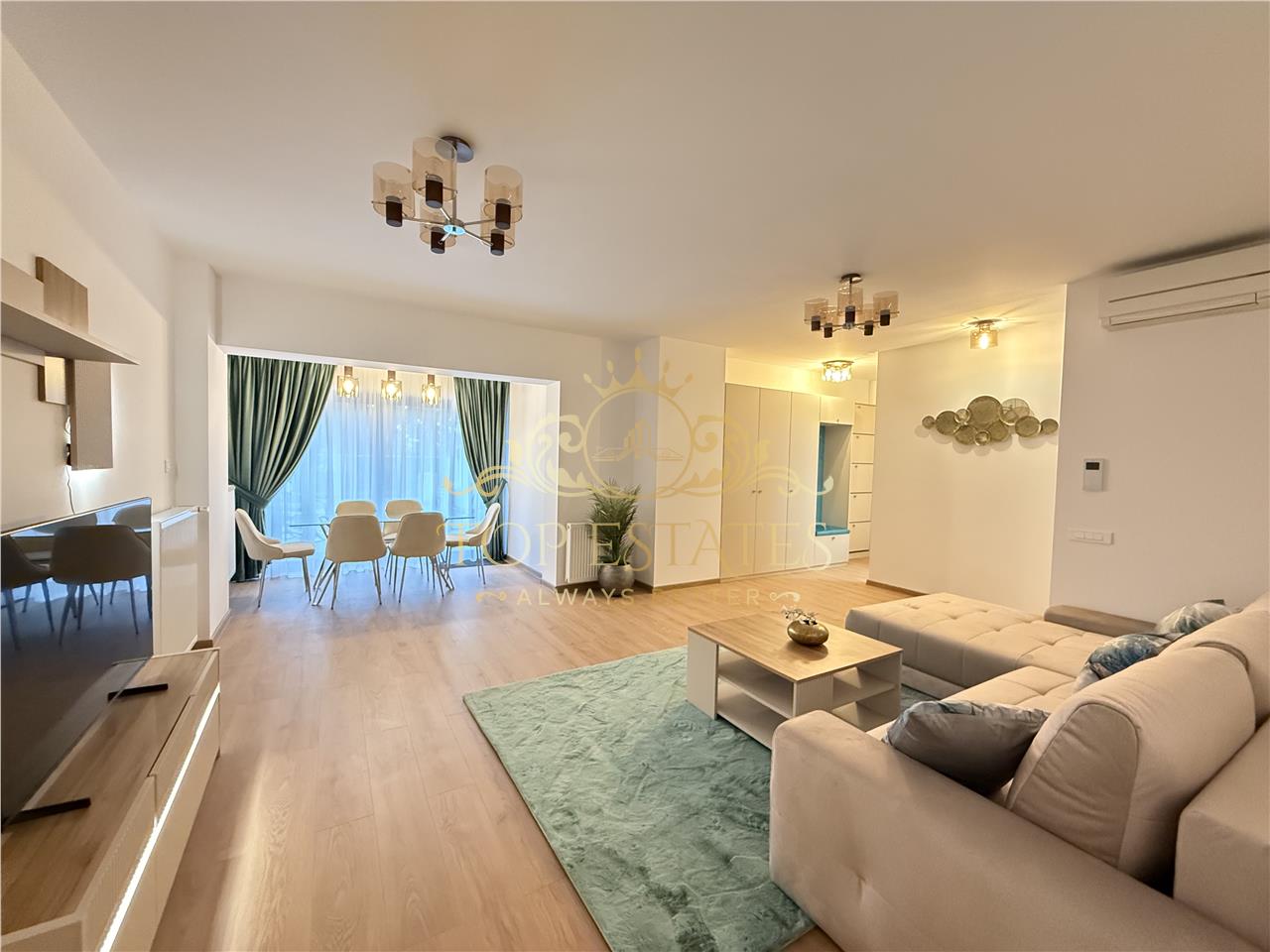 Dotari:Masina rufe Masina vase Rulouri Dressing WC Serviciu Cuptor microunde TV TV Hi-Fi Hota Aer Conditionat Aragaz Frigider Interfon Senzor incendii