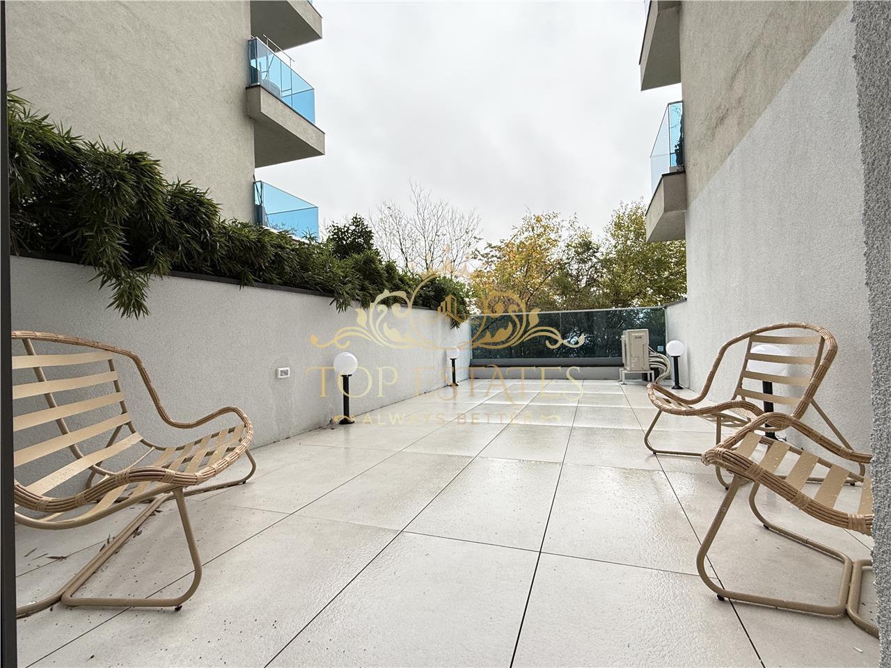 Daca sunteti in cautarea unei rezidente linisite, cu acces facil atat catre centru, cat si catre zona de nord a Bucurestiului, va propunem spre inchiriere un apartament cu 3 camere, situat in cartierul Floreasca, langa Pescariu, in complexul Floreasca Residence. Acesta se inchiriaza complet mobilat si utilat, modern. Ca si utilitati dispune de centrala termica, aer conditionat in fiecare camera, masina de spalat rufe si vase, combina frigorifica. Mobilierul este nou, fiind la prima inchiriere. Acest apartament este situat la parterul blocului 1, si este dotat cu obloane la toate geamurile, are vederea mixta, o terasa de 37 mp si un loc de parcare in incinta complexului. Consideram ca este un apartament foarte bine pozitionat, cum rar se gaseste pe piata imobiliara din zona. Se accepta si animale de companie mici si medii. Ideal pentru o familie sau un cuplu. Pretul este de 1490 euro/luna. Proprietarul doreste un avans standard de 1+1.