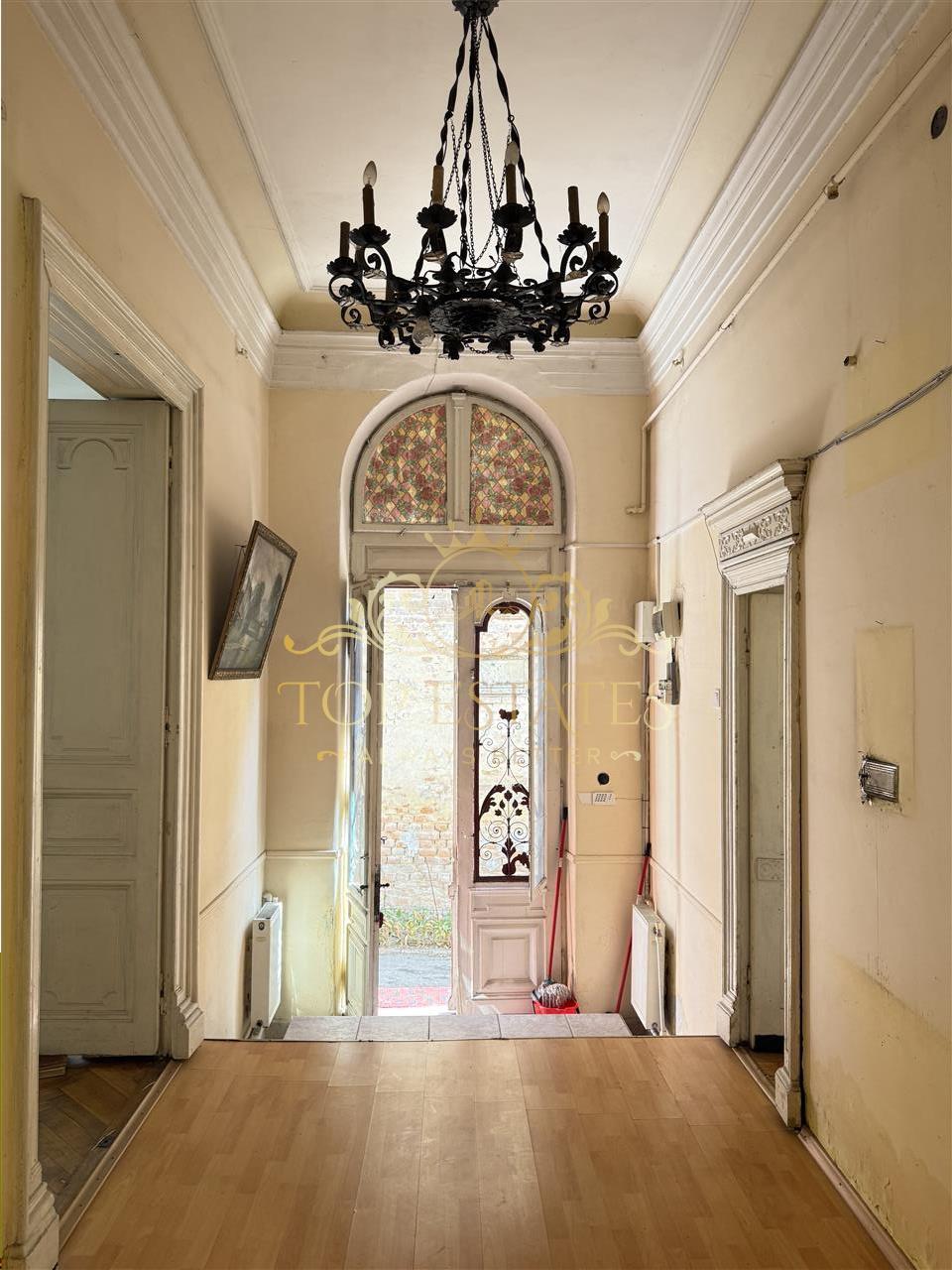 Pozitionata in o fosta zona boiereasca a vechilor Bucuresti, casa este edificata in jurul anilor 1900 in stil eclectic cu influente neoromanesti, ce are o dispozitie pe demisol, parter si mansarda. Accesul se face direct din strada, cu o casa dispusa pe lung, unde la parter regasim un hol impunator de 3,5 m inaltime, cu doua camere spre strada ce au o inaltime de 3 metri, doua grupuri sanitare, bucatarie si anexa. La demisol exista o suprafata de cca 50 mp unde exista o camera mare dubla, iar la mansarda avem o camera si podul de cca 90 mp. Suprafata totala a terenului este de 217 mp cu o amprenta de 140 mp a casei, ramanand o curte libera de aproximativ 80 mp. Proprietatea este ideala pentru extindere, unde conform certificatului de urbanism exista posibilitatea extinderii pana la D+P+2 et. Actualii proprietari au facut demersuri avansate in acest sens, daca se doreste aprofundarea subiectului, nu ezitati sa ne contactati. Pretul este de 415.000 euro, negociabil!