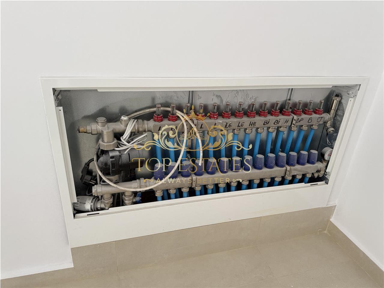 Incalzirea casei se face cu ajutorul unei centrale termice proprii alimentata cu gaz, utilizand un sistem de incalzire in pardoseala, cu termostate de ambient in fiecare camera.