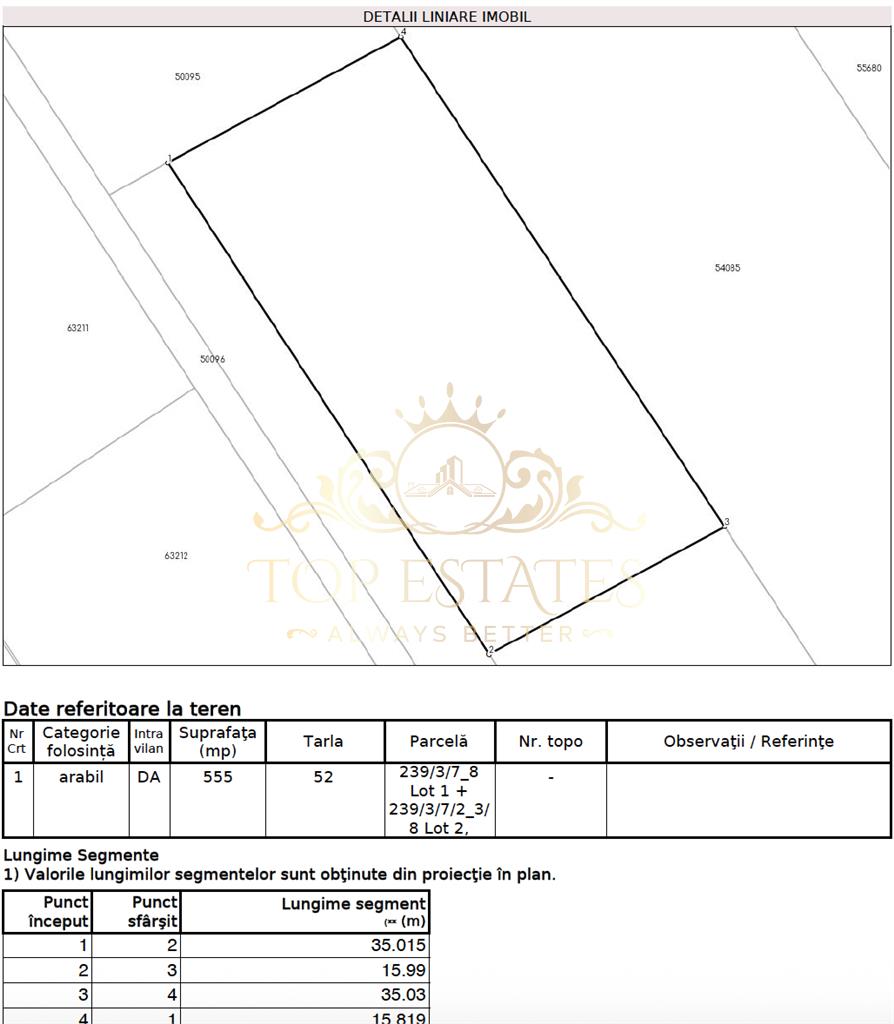 Va propunem spre vanzare un teren intravilan construibil de vanzare in satul Ordoreanu, avand o suprafata de 555 mp si deschiderea de 35 ml la drumul de acces. Terenul face parte din un lot mai mare ce a fost dezmembrat in trecut si de au fost rezultat mai multe loturi egale, de cca 556 mp, cu un drum de acces ce are latimea de 4 ml, fiecare din loturi avand o deschidere la acest drum de acces de 35 ml. Accesul se face direct din DC 125, soseaua principala. Caracteristici teren POT 30 % , CUT 0,9 , Regim de inaltime P+1. Utilitatile din zona sunt Curent electric, apa, gaze, iar acum proprietarii doneaza catre primarie drumul de acces, ulterior primaria va asfalta si va dota drumul cu canalizare.
